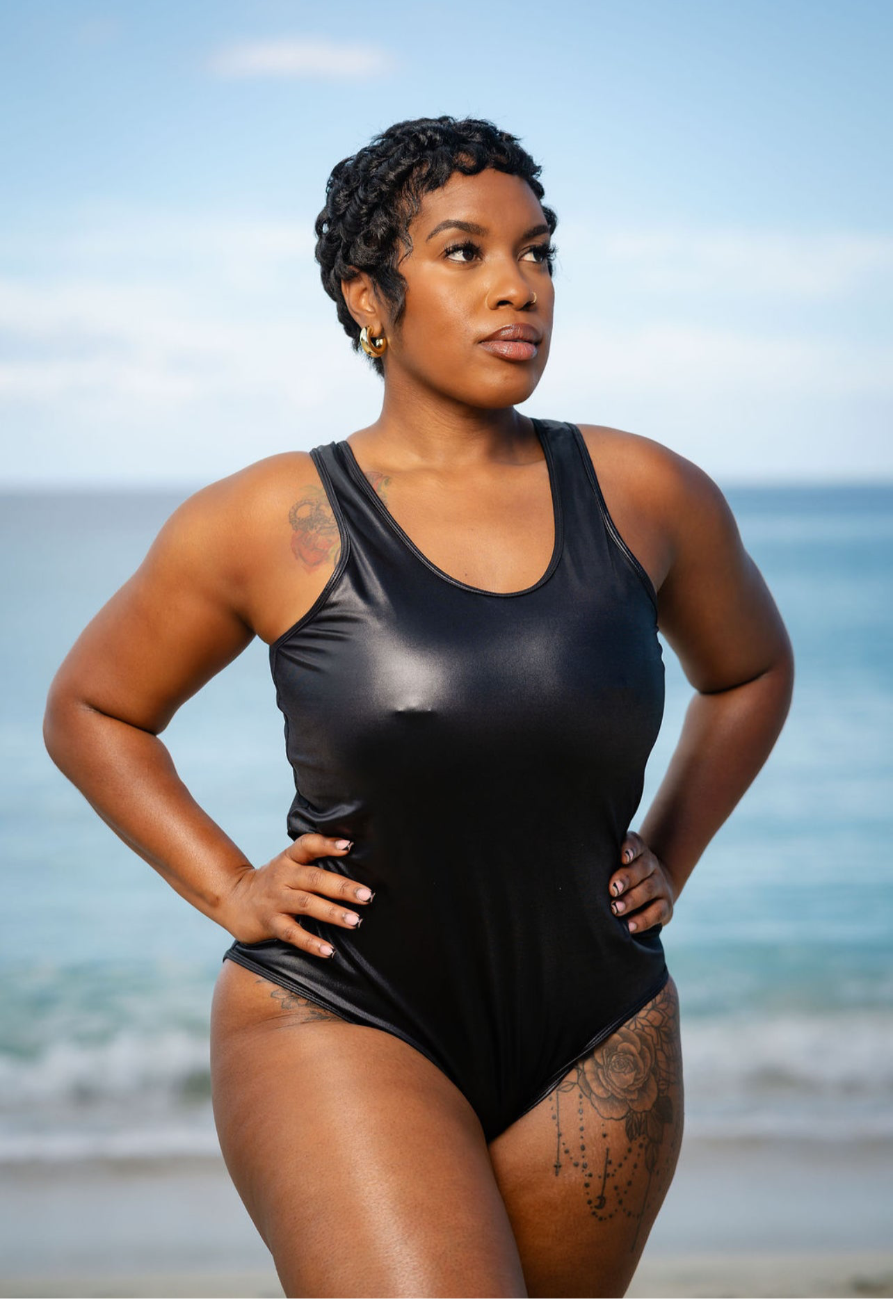 The Janet is glamorously sleek one-piece with removable padding that combines sophistication with comfort. This form-fitted plus size swimsuit, crafted from high-quality quick-dry fabric, features minimal stretch and a rich leather texture with a perfect lacquered shine. Designed to embrace your curves, The Janet will keep you feeling confident and sexy. At Mieux Swim, we celebrate differences, and this suit is a testament to our mission of creating aesthetically pleasing swimwear for every unique body. Shop The Janet for a chic, supportive, and empowering swimwear experience, only at Mieux Swim.